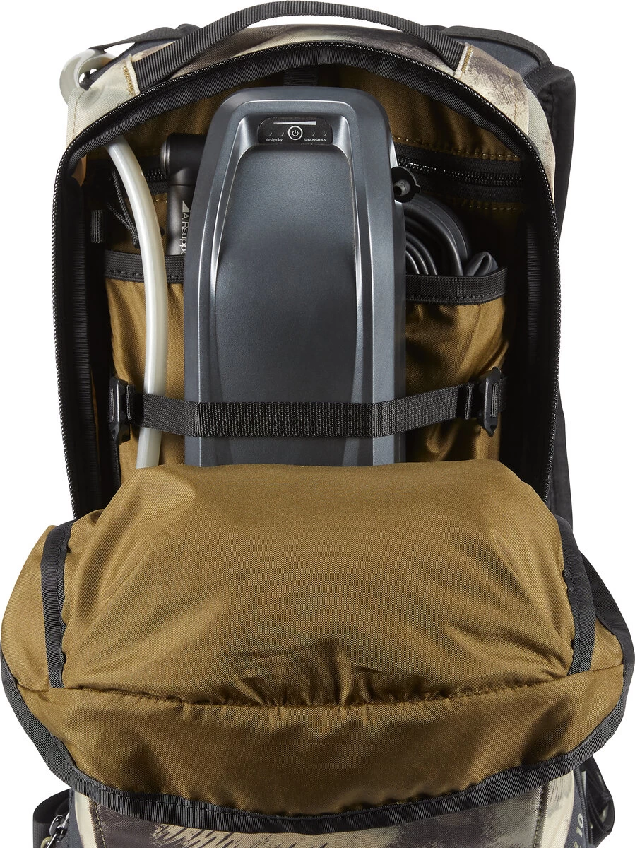 The Drafter 10L meets all your mountain bike backpack needs from hydration to protection in a compact, breathable design. Stay hydrated on the move with the 3-liter Hydrapak reservoir, located on the lumbar for a lower center of gravity, with a high-flow bite valve. Stay cool and comfortable thanks to the air suspension back panel and breathable ergonomic shoulder straps. The organizer pocket features a home for all your tools, replacement parts, and necessities. Additional features include spine protection compatibility, an external helmet carry, plus deployable armor carry straps.